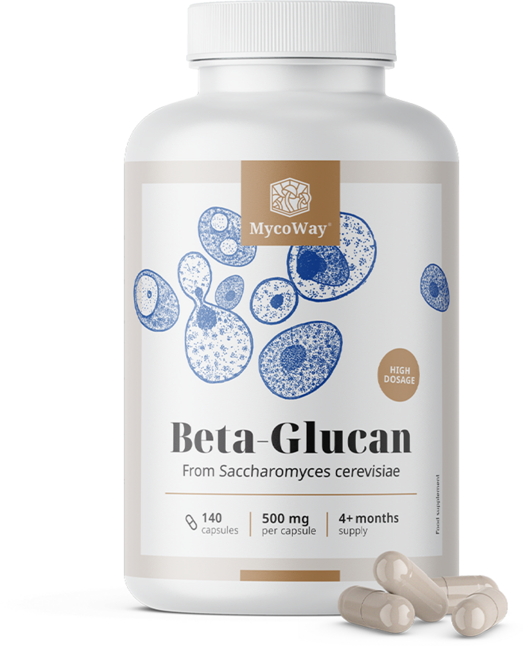 Die MycoWay Beta‑Glucan Kapseln liefern dir jeweils 500 mg Beta-Glucan, gewonnen aus hochwertiger Hefe (Saccharomyces cerevisiae), einer traditionellen Hefesorte, die auch bei der Brot- und Bierherstellung eingesetzt wird. Dieser natürliche Polysaccharid-Ballaststoff wird sorgfältig zu einer praktischen Kapsel verarbeitet, die sich einfach in deine tägliche Routine integrieren lässt.
