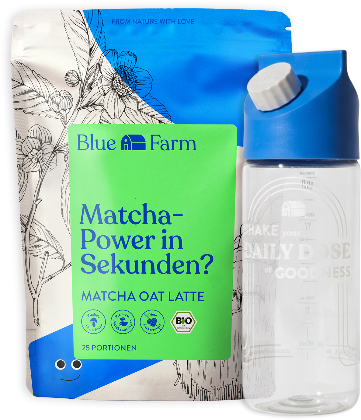 Organic Matcha Oat Latte by Blue Farm contains high-quality matcha tea, Lion's Mane mushroom and creamy oat drink powder to create an exquisitely flavourful drink. Thanks to the delicate, slightly bitter note and the natural sweet taste of oats, it is a fantastic alternative to dairy milk and other plant-based drinks.