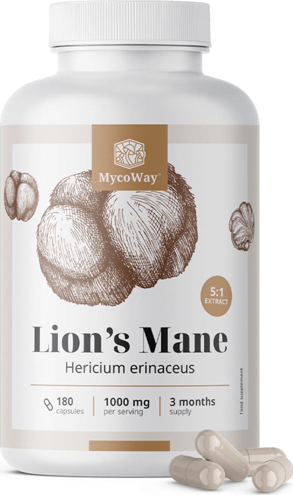 Lion's Mane Capsules - Extract 5:1, 180 Capsules