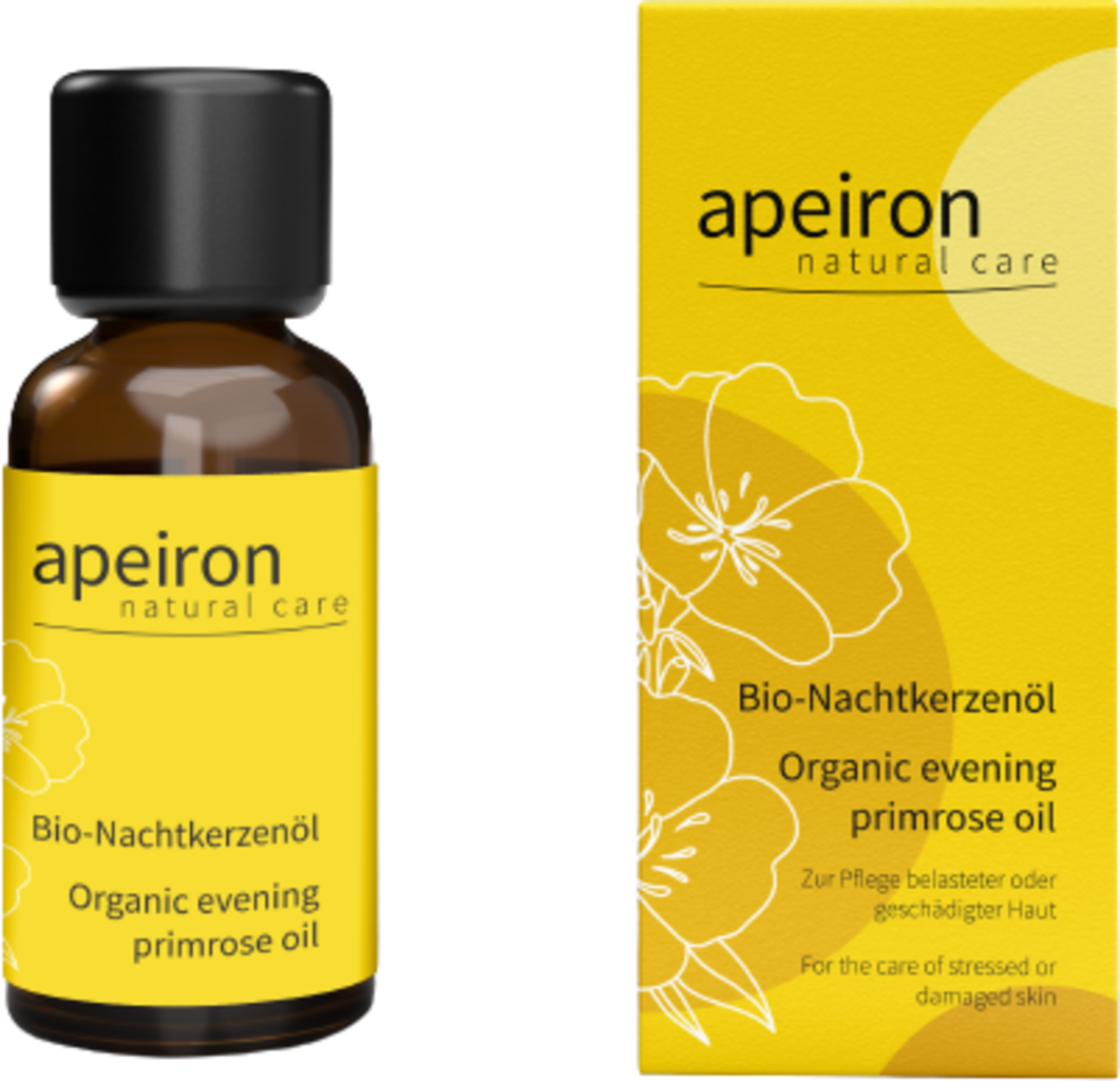 Questo olio deriva dai semi di enotera ed è particolarmente ricco di acido gamma-linolenico e acido linoleico. Questi acidi grassi omega-6 polinsaturi forniscono un'idratazione intensa e consentono alla pelle di rigenerarsi meglio e più velocemente. Il prodotto può essere utilizzato sulla pelle affetta da dermatite e secchezza.
