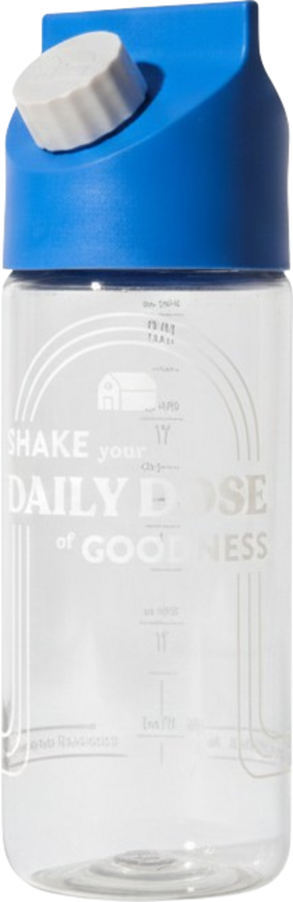 Con la pratica bottiglia di vetro firmata Blue Farm e il misurino abbinato, puoi finalmente dire addio ai pesanti cartoni del latte. Prepara la tua bevanda Blue Farm preferita, fresca e veloce e goditela a casa o in viaggio.