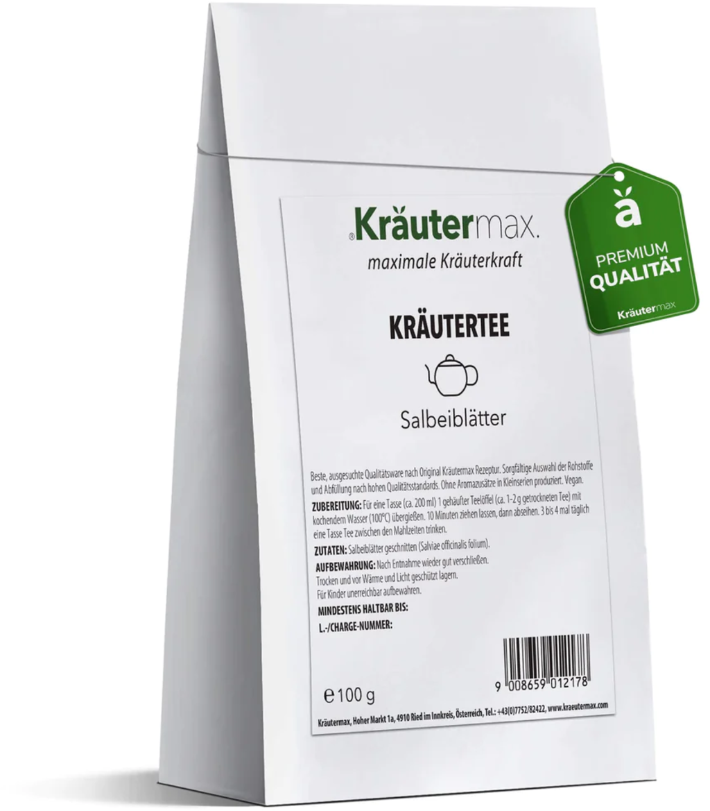 La tisana alle foglie di salvia di Kräutermax viene prodotta rispettando i più alti standard di qualità. L'infuso è senza esaltatori di sapidità, aromi e additivi.