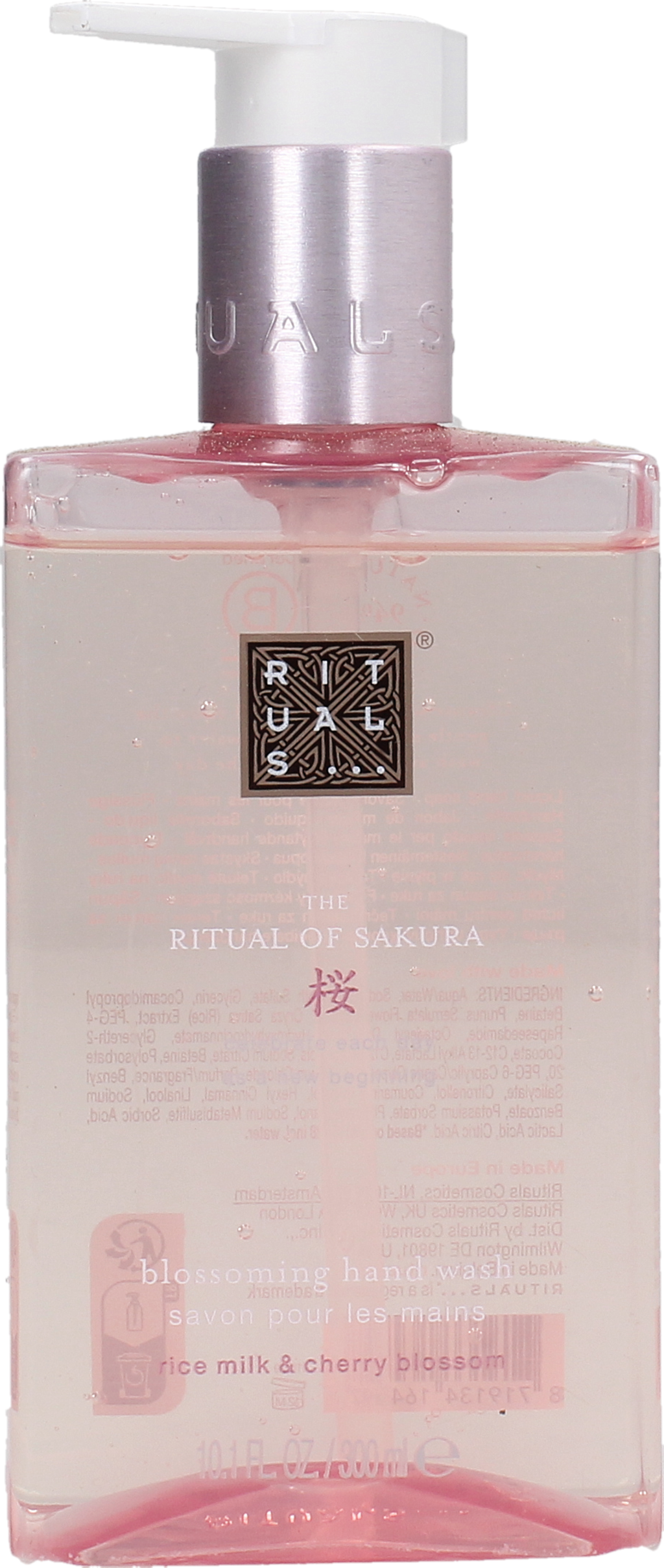 Aqua, Sodium Laureth Sulfate, Glycerin, Cocamidopropyl Betaine, Prunus Serrulata Flower Extract, Oryza Sativa Extract, Peg-4 Rapeseedamide, Octadecyl Di-T-Butyl-4-Hydroxyhydrocinnamate, Glycereth-2 Cocoate, C12-13 Alkyl Lactate, C12-13 Alcohols, Sodium Citrate, Betaine, Polysorbate-20, Peg-6 Caprylic/Capric Glycerides, Sodium Chloride, Parfum, Benzyl Salicylate, Citronellal, Cumarin, Geraniol, Hexyl Cinnamal, Linalool, Sodium Benzoate, Potassium Sorbate, Phenoxyethanol, Sodium Metabisulfite, Sorbic Acid, Lactic Acid, Citric Acid