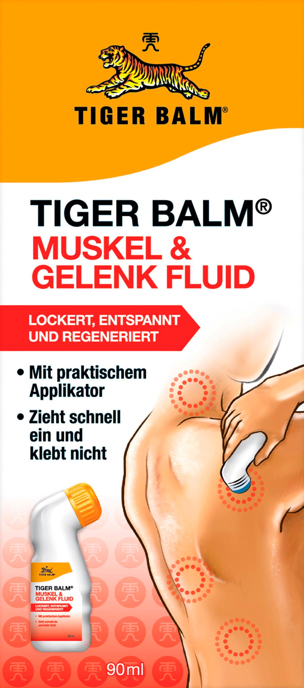 Tiger Balm Muscle & Joint Fluid è un'emulsione per uso esterno. Grazie al pratico applicatore, il fluido può essere applicato direttamente sulla pelle, senza usare le mani. Questo garantisce un'applicazione pulita e senza sporcare, anche quando sei in giro.
