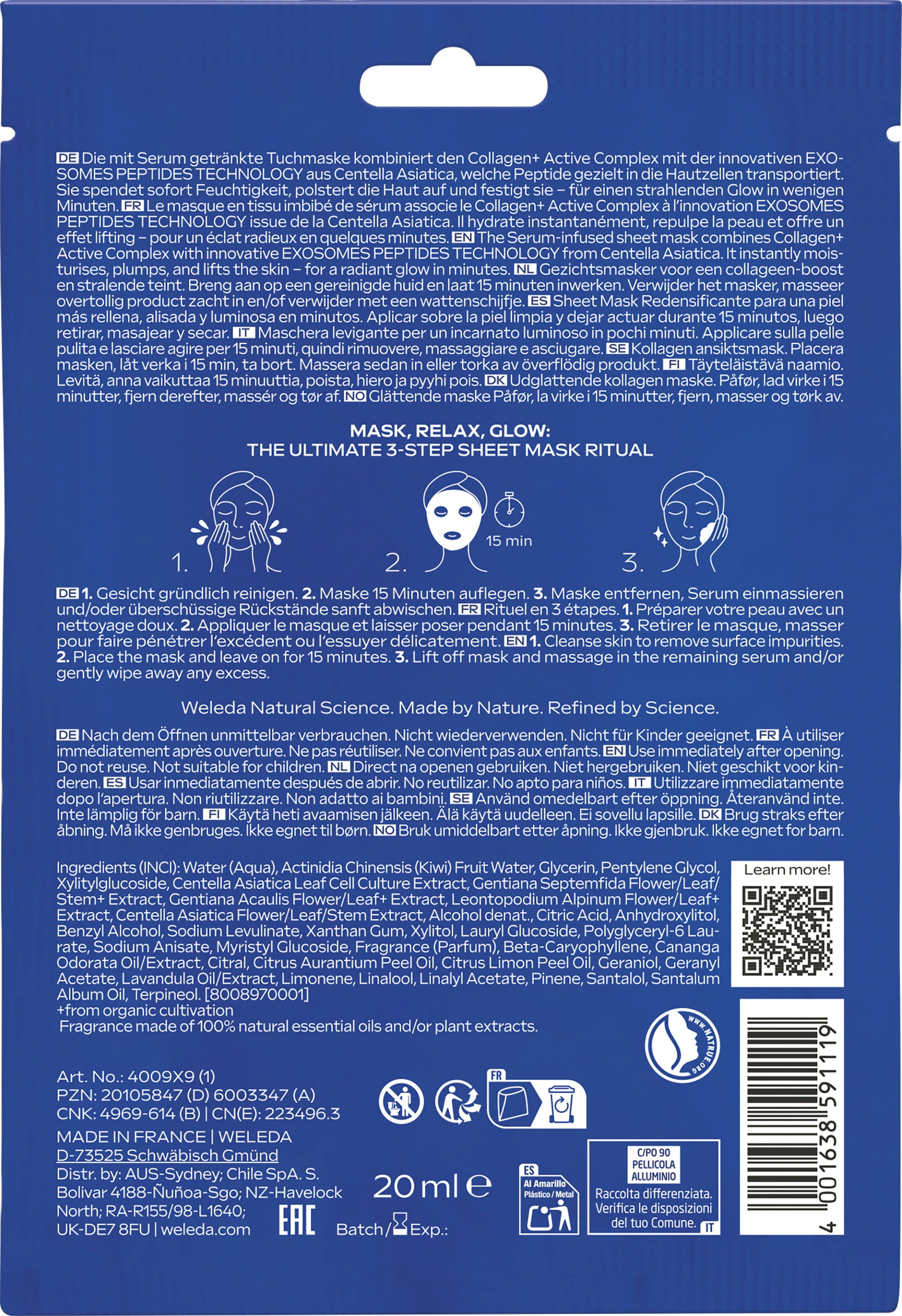 Weleda Maschera in fogli al collagene EXO BOOST, 20 ml